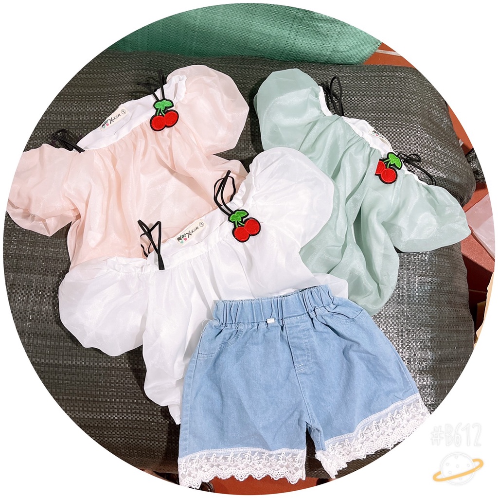 Bộ 2 dây rớt vai cherry quần chân ren bé gái