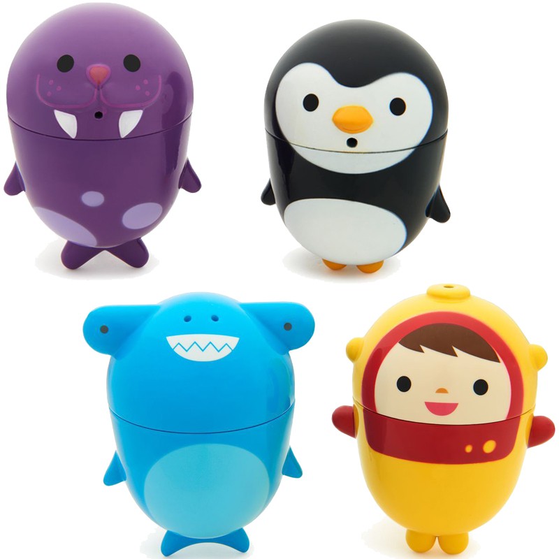 Giới thiệu Bộ 2 đồ chơi phun nước tháo lắp (chim cánh cụt & sư tử biển, thợ lặn & cá mập) Munchkin MK17280