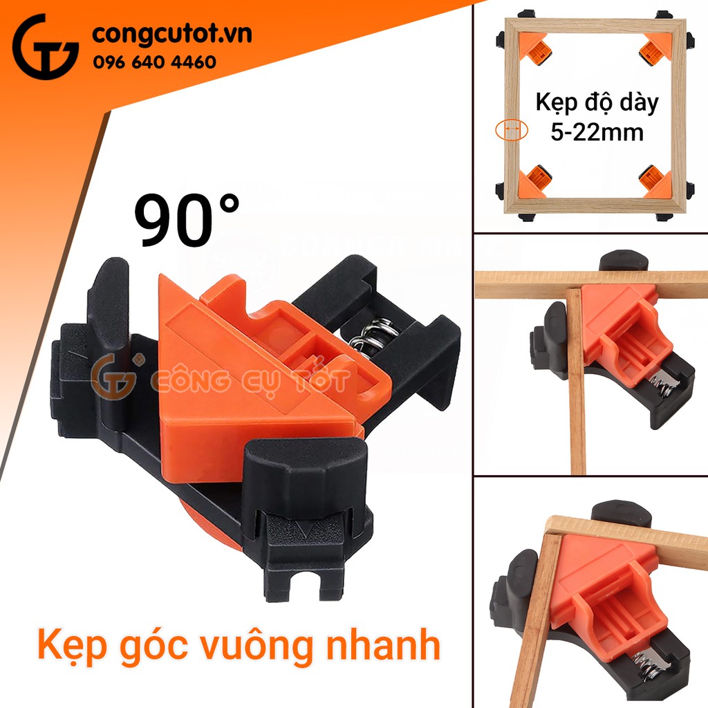 1 bộ gồm 2 Kẹp góc vuông nhanh. Kẹp góc vuông làm từ nhựa cứng ABS bền bỉ, chống va đập, có độ bền cao. Thiết kế thông minh hình thành cơ chế kẹp nhanh giúp người dùng tiết kiệm thời gian. Sản phẩm có khả năng kẹp cố định các chi tiết, vật liệu ở góc 90°, góc chữ T một cách chắc chắn. Kẹp góc vuông ứng dung gia công các khối vuông góc như: hàn, dán, gắn keo, bắt ốc vít giữa các thanh, các tấm, các chi tiết lại với nhau.