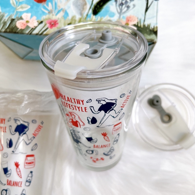 Giới thiệu Bộ 2 ly gốm trắng hoạ tiết có quai - ly thủy tinh có nắp - ly dĩa gốm tráng men [ Hàng quà tặng P&G ]