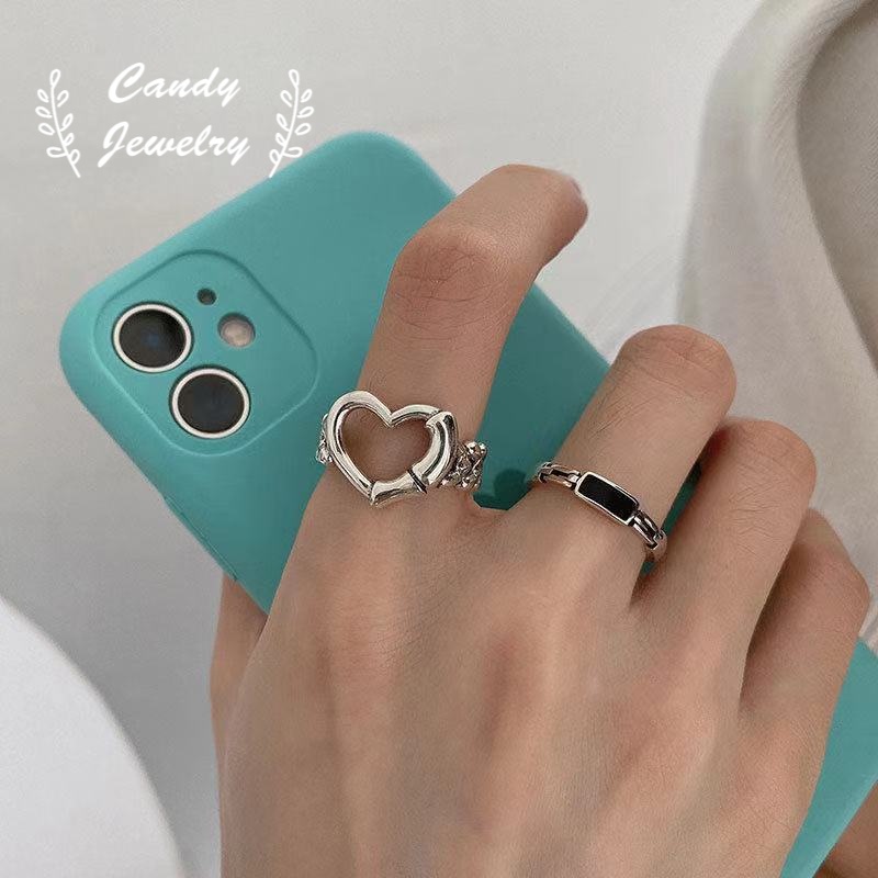 Giới thiệu 2 Nhẫn MANYUE dạng hở mặt hình trái tim/ chữ nhật thời trang Hàn Quốc cho nữ