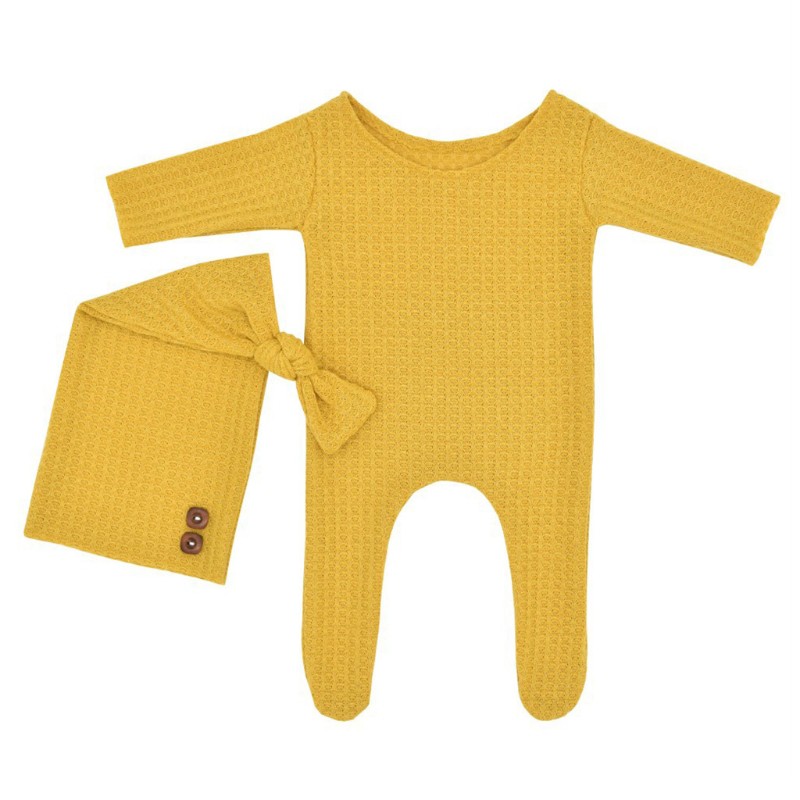 Giới thiệu 2 Pcs/Set Infants Photo Shooting Clothing Baby Knitted Jumpsuit Long Tail Cap Kit Hat Romper Newborn Photography Props