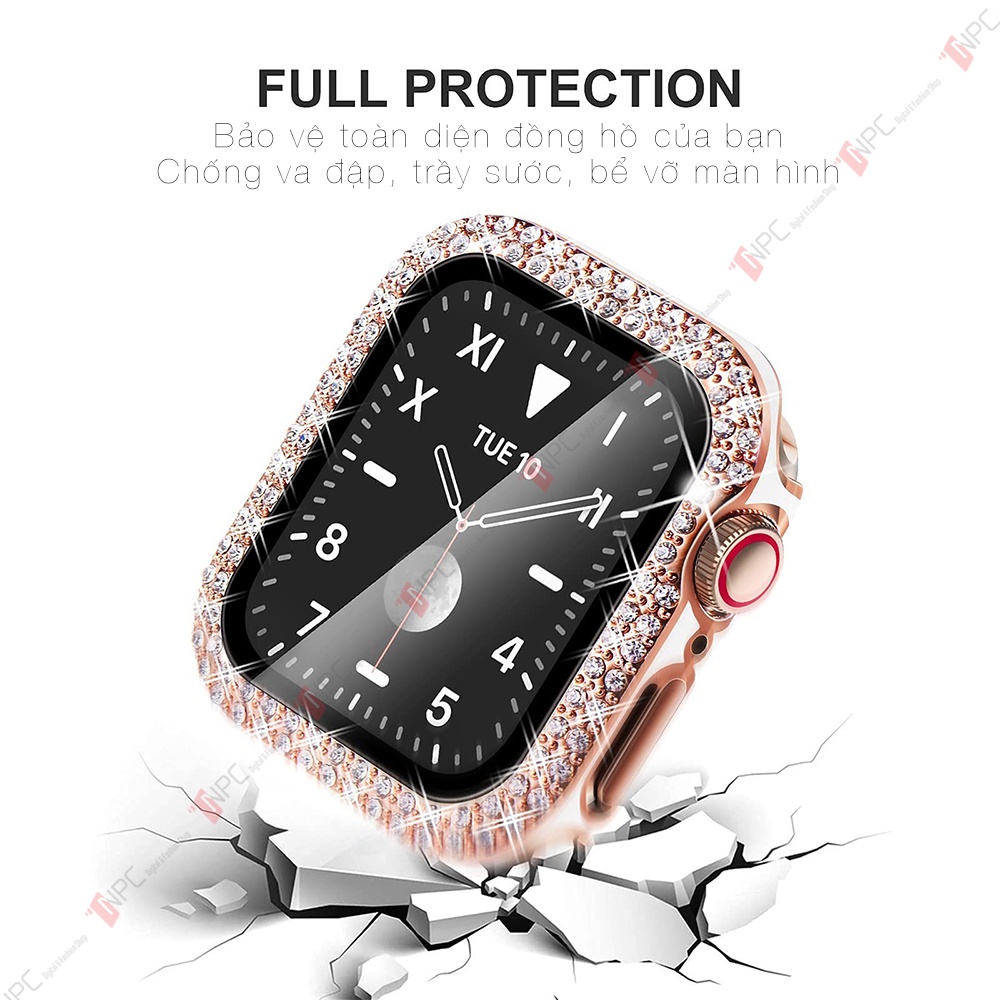 [2 viền đá] Ốp Kính Cường Lực Đính Đá Nạm Xà Cừ dành cho Series 7 SE 6 5 4 kích cỡ 40mm 44mm 41mm 45mm