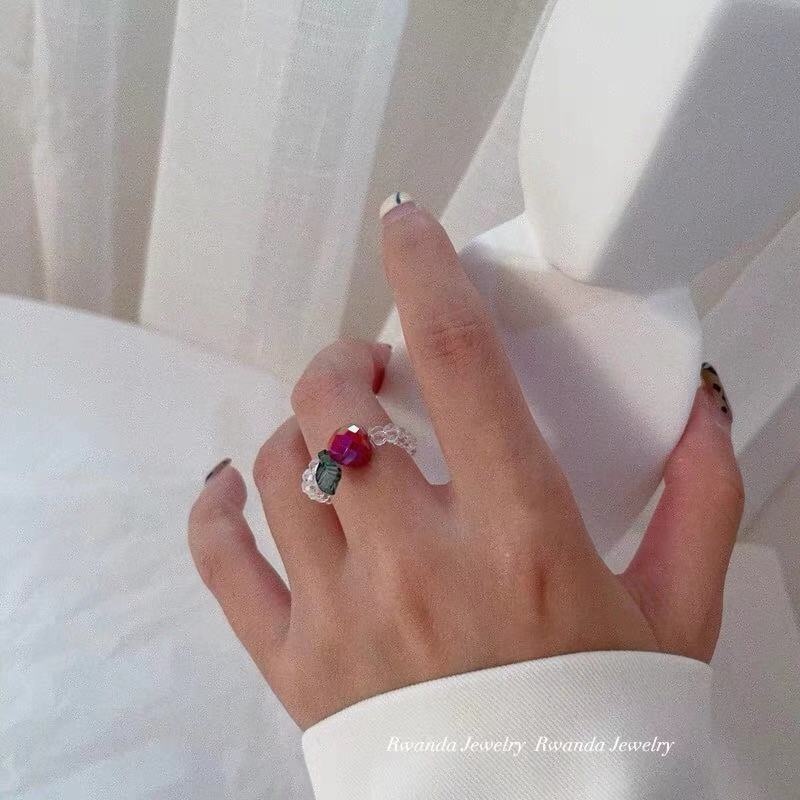 Giới thiệu 2021 Mới Nhẫn Pha Lê Co Giãn Họa Tiết Trái Cây Nhỏ Dễ Thương Tươi Tắn Phong Cách Hyuna Ins Sen System