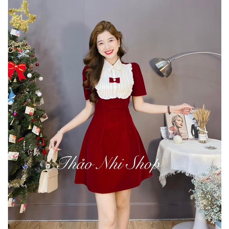 Video giới thiệu sản phẩm [204] Váy Nhung Đỏ Phối Cổ Bèo Trắng Kèm Nơ Có Ảnh Thât. Nguồn: Shopee.