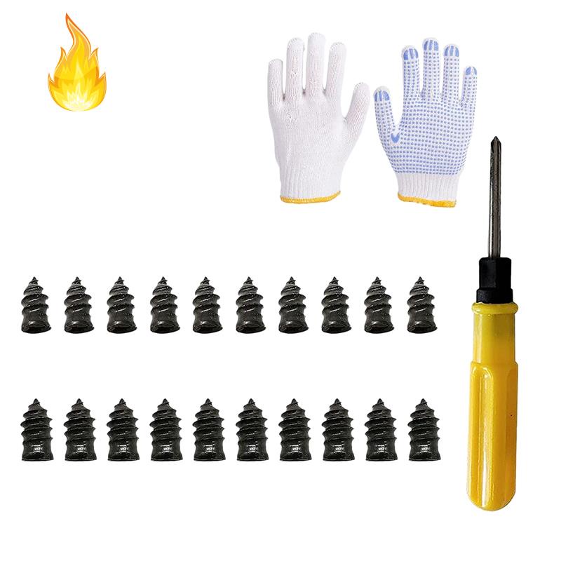 Package Contents: 10 x Tire repair (small) 10 x Tire repair (large) 1 x screwdriver 1 pair x GlovesOnly the above package content, other products are not included. Note: Light shooting and different displays may cause the color of the item in the picture a little different from the real thing. The measurement allowed error is +/- 1-3cm.