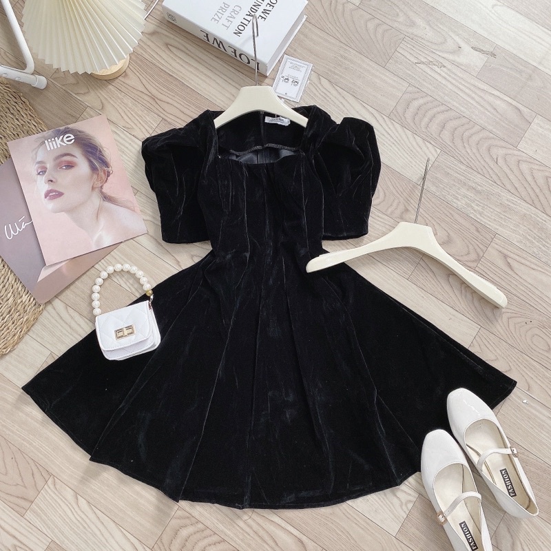 Giới thiệu [226] Váy Nhung Xếp Ly Eo Dáng Xoè 2 Màu Sang Chảnh Có Ảnh Thật