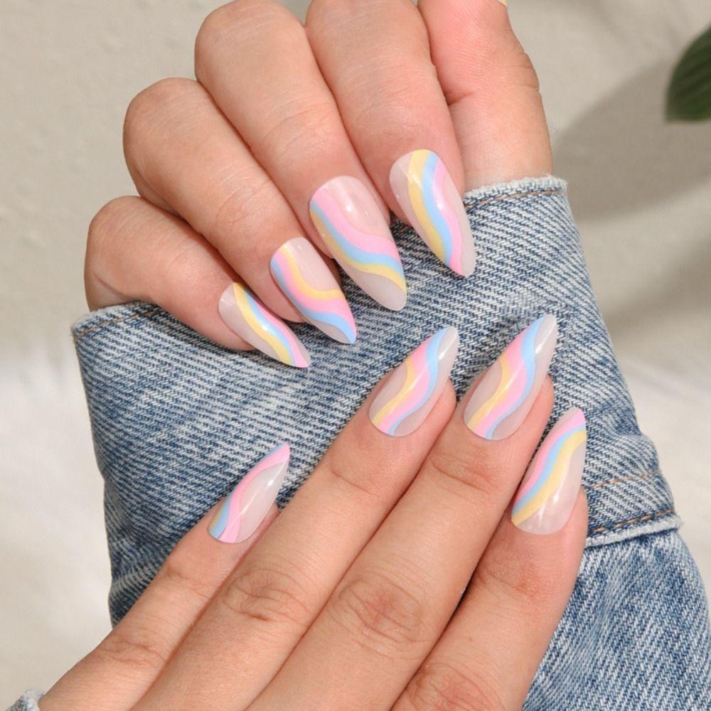 24 cái Mẹo làm móng giả Móng tay giả Dài Hạnh nhân Pháp Long lanh Màu đen Đầy màu sắc Bấm gợn sóng trên móng tay Nials giả Tự làm móng tay Mẹo làm móng có thể tháo rời