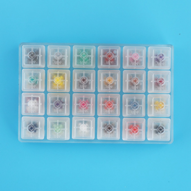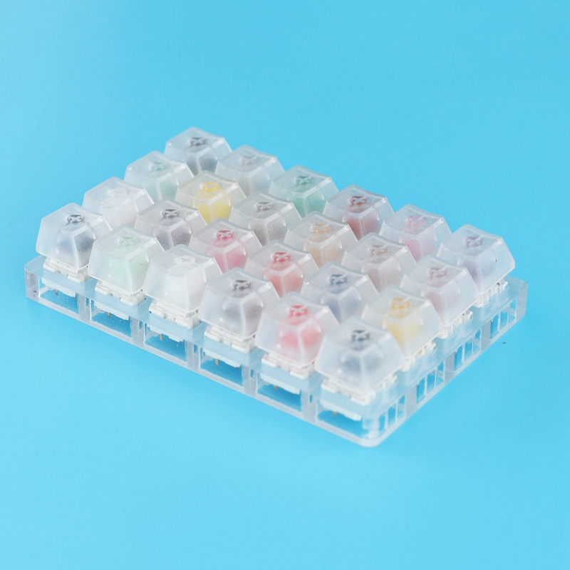 Công cụ kiểm tra công tắc 24 phím, Bộ lấy mẫu Keycap bằng nhựa trong suốt cho bàn phím cơ hộp kailh. Màu SẮC CHUYỂN ĐỔI RÕ RÀNG: Được gắn trên một mô hình acrylic trong suốt pha lê, bộ kiểm tra công tắc này cho phép bạn dễ dàng biết màu của mọi phím. Các công tắc có thể tháo rời và hoán đổi cho nhau từ đế acrylic. Các KHÓA MẮT TỰ LÀM: Có thể là một trang trí máy tính để bàn hoàn hảo. Cũng là một tiện ích tốt giúp giảm bớt năng lượng hoặc lo lắng thần kinh. Bên cạnh đó, bạn có thể lấy công tắc và thay thế bàn phím của riêng mình nếu đủ chuyên nghiệp.
