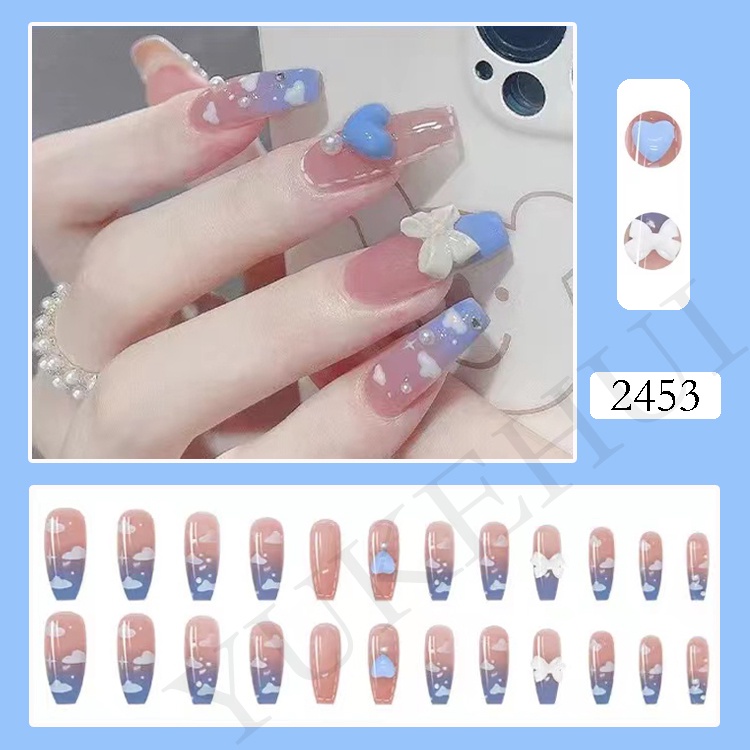 2453 YUKEHUI bộ móng tay giả set móng giả trong suốt móng tay giả đính nơ móng tay giả dài đính đá móng giả đẹp bộ móng tay giả đính đá móng tay giả đính đá ngắn  móng giả thiết kế  set 24 móng tay giả
