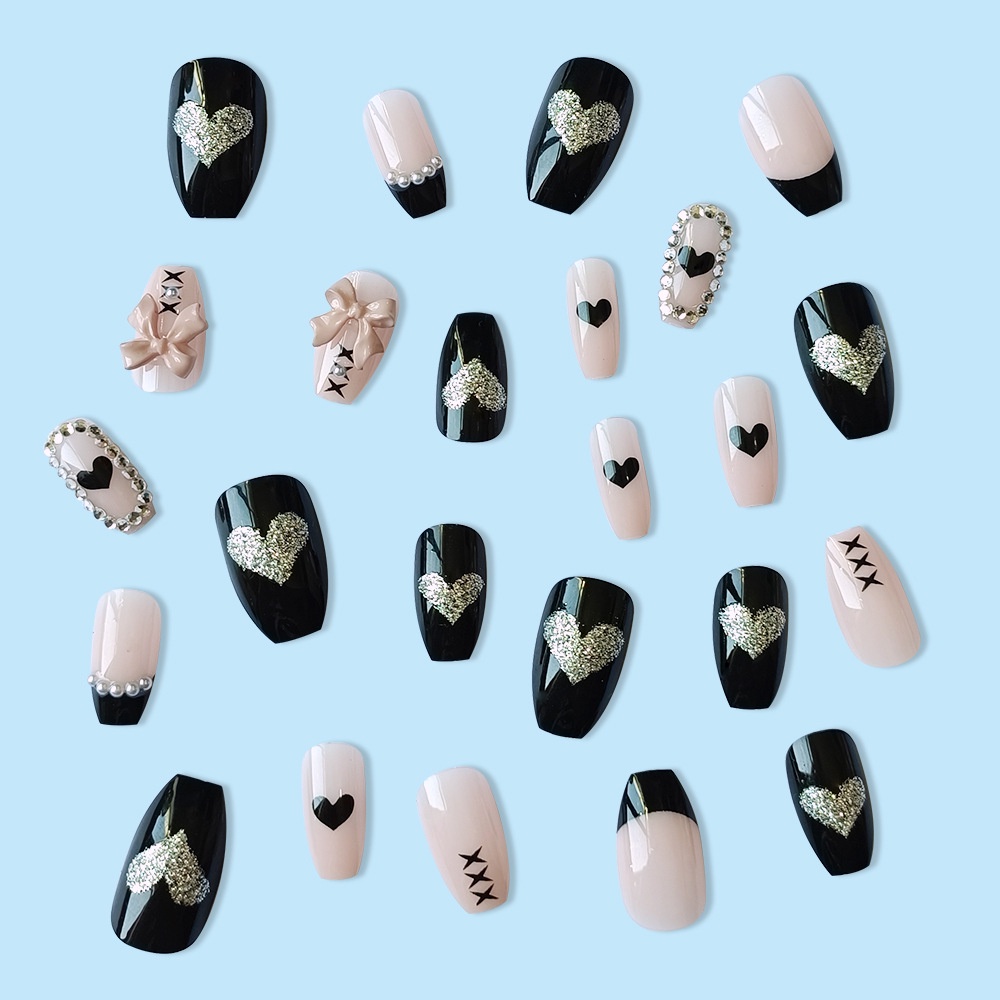 Đóng gói: 1. chứa 24 chiếc 2. Keo dán móng 3. Siêu quà tặng: 1 chiếc dũa móng tay