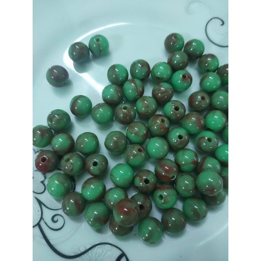 Giới thiệu 25gam hạt nhựa tròn màu xanh lá vân nâu size 10mm