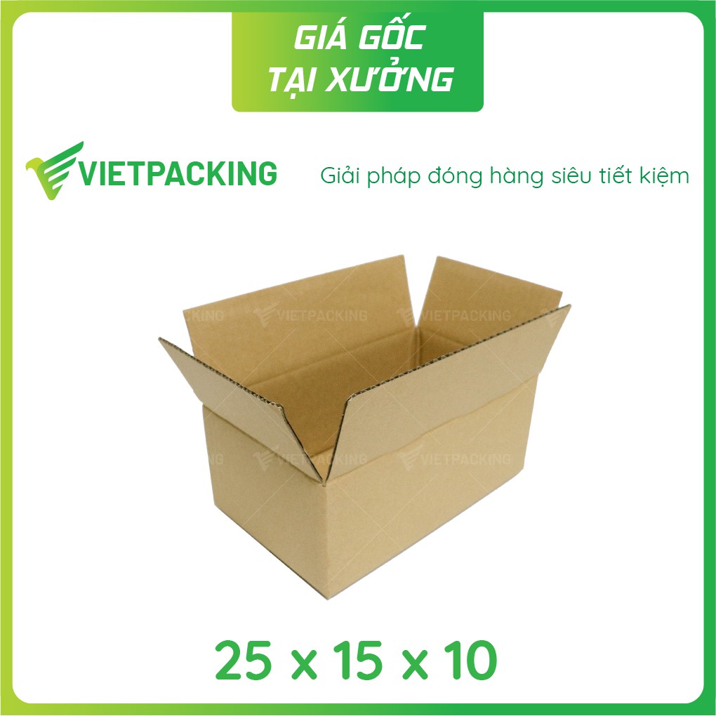 Combo 50 hộp carton đóng hàng Vietpacking, hộp giấy gói hàng 25x15x10 chất lượng cao, dày dặn, cứng cáp, chống va đập tốt.