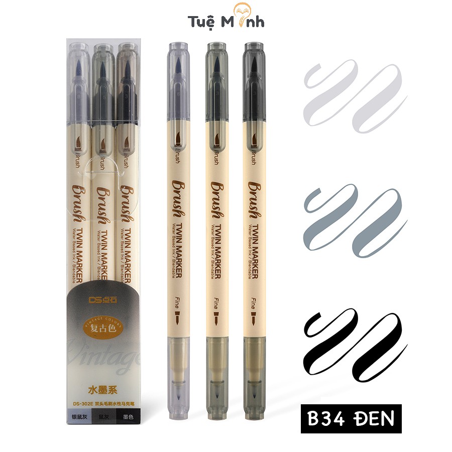 Giới thiệu Bộ 3 bút brush 2 đầu Twin Marker B34 ngòi lông + ngòi fine viết ghi chép đa năng