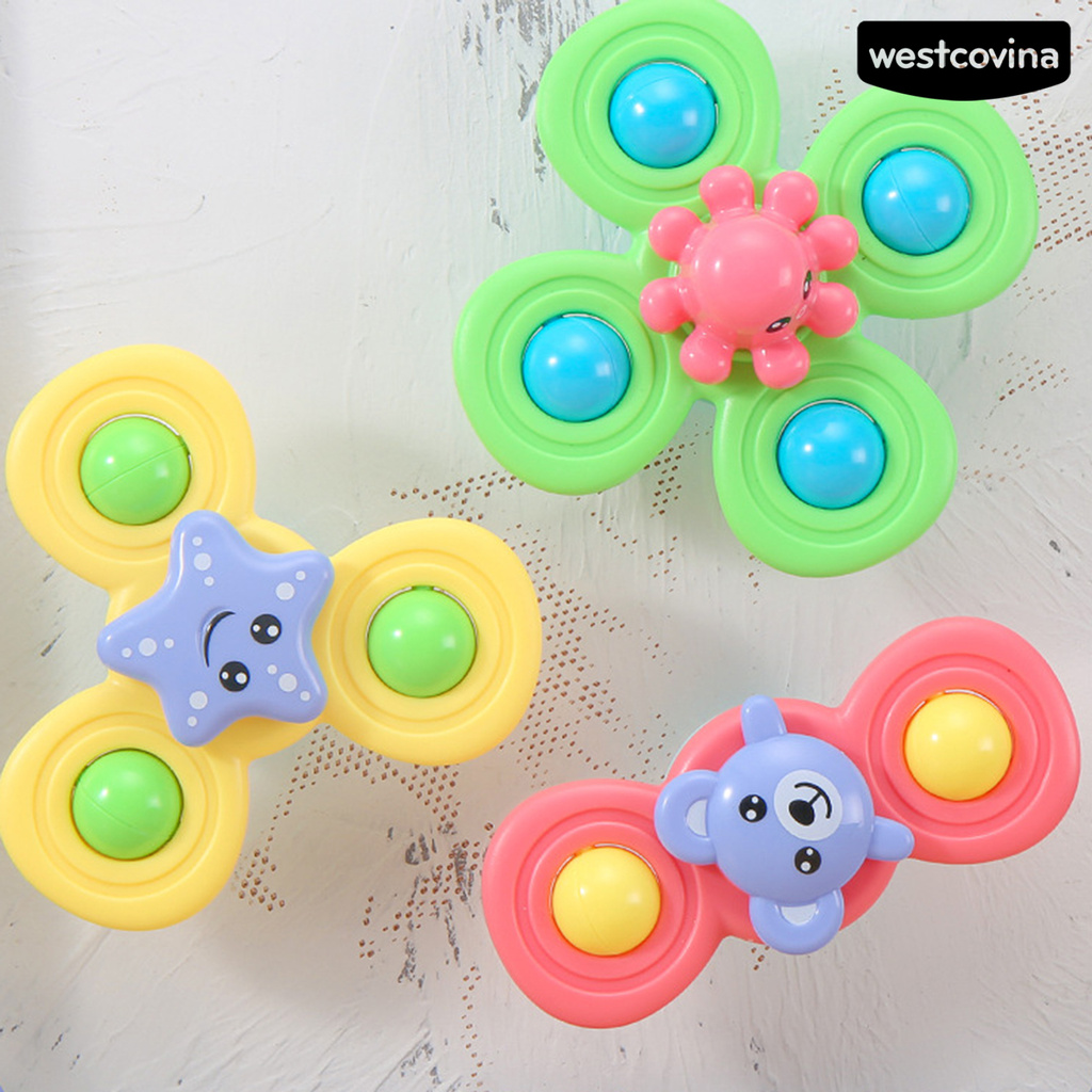 Description: The toy is designed with flower pattern and the characteristic of rotating, which allows it to create fun and bring happiness to children. What a versatile toy which is designed with the function of multi-purpose and bright color, it is able to relieve stress or attract baby's attention when they are bathing. The toy is made of ABS material. The length of starfish is 12cm, the width is 10.5cm, the length of octopus is 11cm, the width is 11cm, the length of the bear is 12.5cm, the width is 5.2cm. It is suitable for baby bathing and daily entertainment.