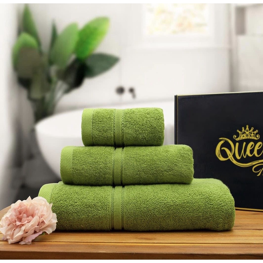 Bộ 3 khăn tắm [SET SANG TRỌNG] Thấm hút, Cotton dày dặn, 1 khăn mặt, 1 lau đầu, 1 tắm 60x120cm Bộ 3 khăn tắm gồm: 1. khăn mặt: 30x50cm, nặng 70g 2. Khăn lau đầu: 35x80cm, nặng 120g 3. Khăn tắm dày: 60x120cm, Nặng 320g. ⍣ Chất liệu: Cotton cao cấp ⍣ Ứng dụng: Khăn dùng cho gia đình, khăn cho khách sạn, khăn spa, khăn cho trẻ em..... 𝑪𝒐̂𝒏𝒈 𝑫𝒖̣𝒏𝒈 𝑵𝒐̂̉𝒊 𝑩𝒂̣̂𝒕 ✿ ️Khăn bông được sản xuất từ nguồn nguyên liệu bông tự nhiên, thân thiện với môi trường. ✿ Khăn bông không chứa chất phụ gia, chất tẩy trắng, chất tạo mùi, chất bảo quản…bảo vệ sức khỏe. ✿ Khăn bông đạt độ tự nhiên cao, sạch và đặc biệt phù hợp với làn da mỏng manh và nhạy cảm của trẻ em. ✿ Khăn bông rất mềm mại, mịn màng, thấm hút nước cực tốt, tạo cảm giác thoải mái, dễ chịu khi sử dụng. ✿ Khăn bông không bị xù lông khi giặt tay hay giặt máy không bị xơ, phai màu. ✿ Khăn bông có thiết kế mang tính khác biệt cao, sang trọng, bắt mắt. ✿ Khăn bông với bao bì thiết kế độc đáo, đẹp, trang nhã là sự lựa chọn hoàn hảo, rất phù hợp để tặng đối tác, nhân viên, bạn bè và người thân. 𝑯𝒖̛𝒐̛́𝒏𝒈 𝒅𝒂̂̃𝒏 𝒃𝒂̉𝒐 𝒒𝒖𝒂̉𝒏 ⊗ Sản phẩm mua về nên giặt trước khi sử dụng. ⊗ Không giặt với chất tẩy mạnh. ⊗ Khi sử dụng máy giặt nên giặt túi giặt áp lực nhẹ và giặt riêng với sản phẩm màu. ⊗ Không phơi dưới nắng gắt.