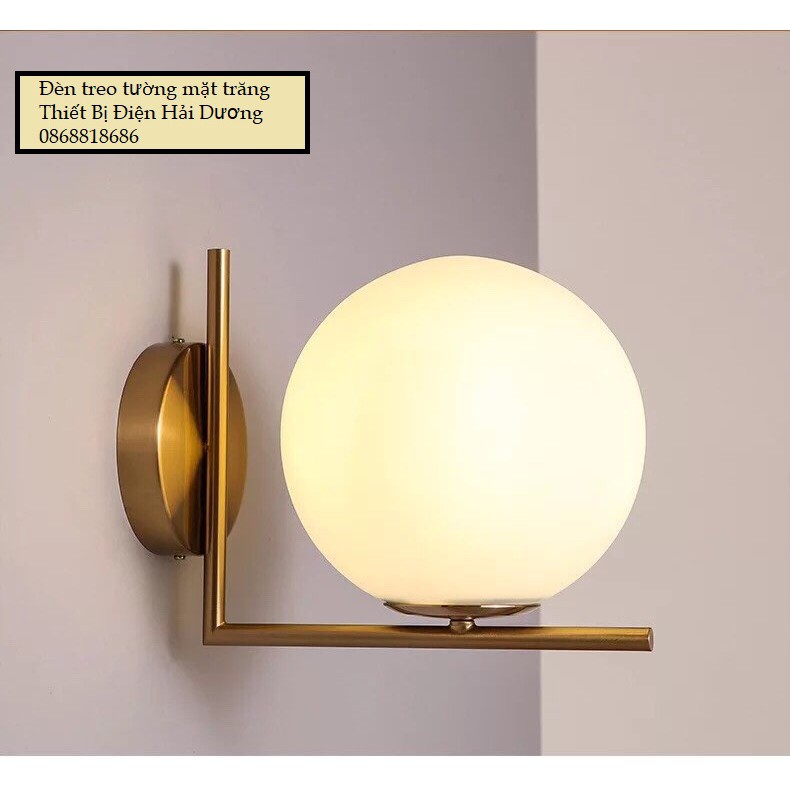 - Loại đèn treo tường mặt trăng - Chất liệu : Chao thủy tinh mờ + Thân đèn làm từ kim loại sơn tĩnh điện không gỉ mạ vàng - Màu sắc : mạ đồng - Đui xoáy E27 thông dụng - Kích thước :