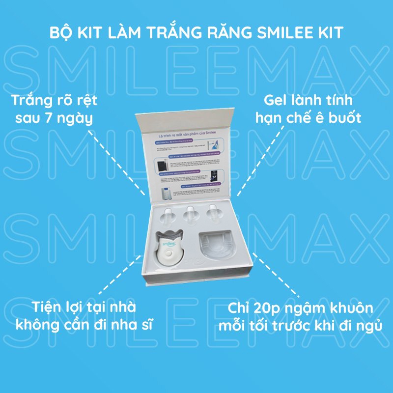 Giới thiệu Bộ 3 ống gel Max tẩy trắng răng tiết kiệm Smilee Chính hãng Bộ 2 ống gel MAX được sử dụng đi kèm với Bộ Kit SMILEE MAX giúp bạn có một hàm răng trắng bật 6 tông vô cùng nhanh chóng và hiệu quả tức thì.
