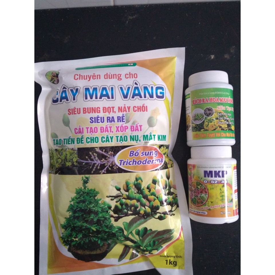 Set phân bao gồm Phân mai #Công Dụng : - Mập nụ, hoa to, màu sắc đẹp, bền hoa, hoa lâu tàn. - Hỗ trợ bộ rể phát triển mạnh, phục hồi tái tạo bộ rễ mai sau tết. - Cải tạo và bổ sung nhiều chất dinh dưỡng cho đất, phù hợp với nhiều loại cây - Bảo vệ bộ rễ trong điều kiện đất bị nhiễm mặn, nhiễm phèn, ngộ độc hữu cơ, hạn chế sâu bệnh cho cây trồng.
