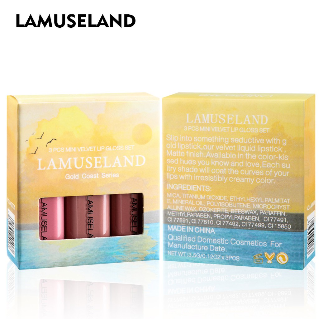 Giới thiệu Bộ 3 son môi nhung mịn LAMUSELAND lâu trôi chống thấm nước