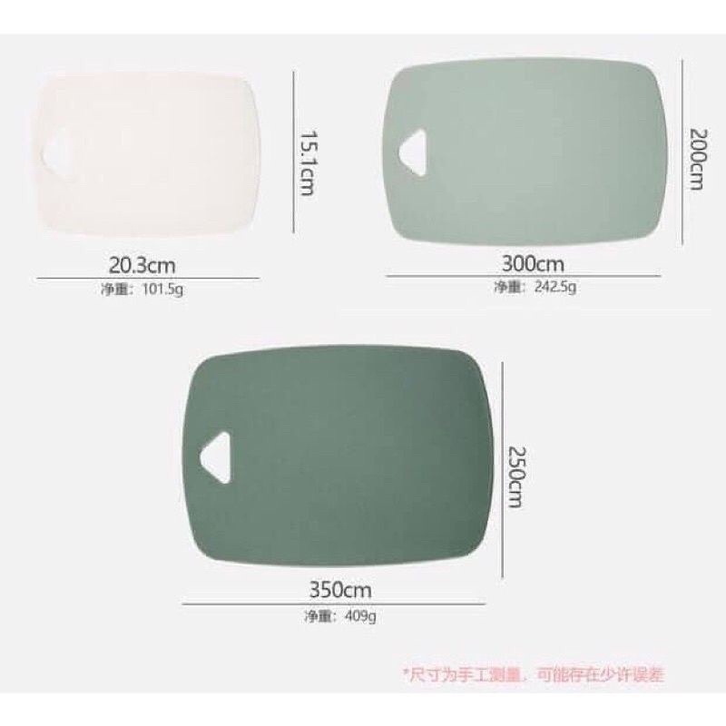 Bộ 3 thớt kháng khuẩn,thớt nhựa pp an toàn cho sức khỏe ♻️Khách hàng lưu ý: sản phẩm được đóng gói và giao hàng màu sắc ngẫu nhiên. xin lỗi quý khách về sự bất tiện này ạ. 🔶 Chất liệu: an toàn, thành phần nhựa P.E cao cấp, băm chặt khó hằn vết dao, chống bám mốc, giữ thớt sạch như mới, đảm bảo an toàn cho sức khỏe. 🔶 Kích thước: - 35x25cm, 30x20cm, 20x15cm. 🔶 Chi tiết sản phẩm: - Công nghệ Nano kháng khuẩn: Thớt nhựa Nano kháng khuẩn được đặc chế bằng phương pháp đặc biệt, kết hợp giữa thành phần nhựa Poly Ethylene cao cấp và các phân tử Nano kháng khuẩn, chống bám mùi, chống sóng điện từ. - Thử nghiệm kháng khuẩn: Sản phẩm được trung tâm đo lường chất lượng chứng nhận có thành phần kháng khuẩn tốt, hạn chế đến 99,8% các vi khuẩn có hại, SFmark 90%. Chịu nhiệt đến -20 – 60 độ C. - Tính tiện lợi cao: Thớt sử dụng được cả hai mặt, thích hợp sử dụng cho việc nấu ăn hàng ngày, có thể sử dụng để thái, băm, chặt... Bạn có thể dùng để thái đồ sống và đồ chín. - Thớt chống trơn trượt, chống xước mặt thớt, kháng khuẩn, có thể treo rất tiện\