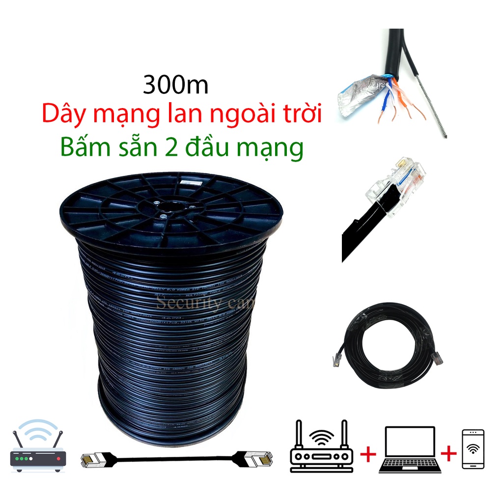 Giới thiệu [300m] Dây mạng 4 lõi đồng nguyên chất 100% kèm cáp chịu lực chắc chắn có bọc bạc, dầu chống ẩm