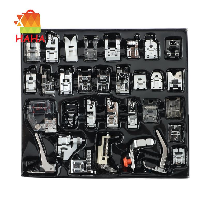 Bộ 32 chân vịt dành cho máy may tay cầm thấp . Bộ dụng cụ nhỏ gọn , thương hiệu mới và chất lượng cao , rất thiết thực và có thể đáp ứng mọi nhu cầu may vá của bạn . Sử dụng chúng làm phụ kiện thời trang cho áo sơ mi và váy , đường viền cho rèm cửa trong suốt hoặc xù cho ga trải giường , váy , v.v . Phù hợp với hầu hết các thương hiệu máy may , chẳng hạn như Singer , Brother , Babylock , Euro-pro , Janome, Kenmore, White , Juki, New Home , Necchi, Elnau , Husqvarna Viking, Toyota và các máy may nội địa có tay cầm thấp khác .