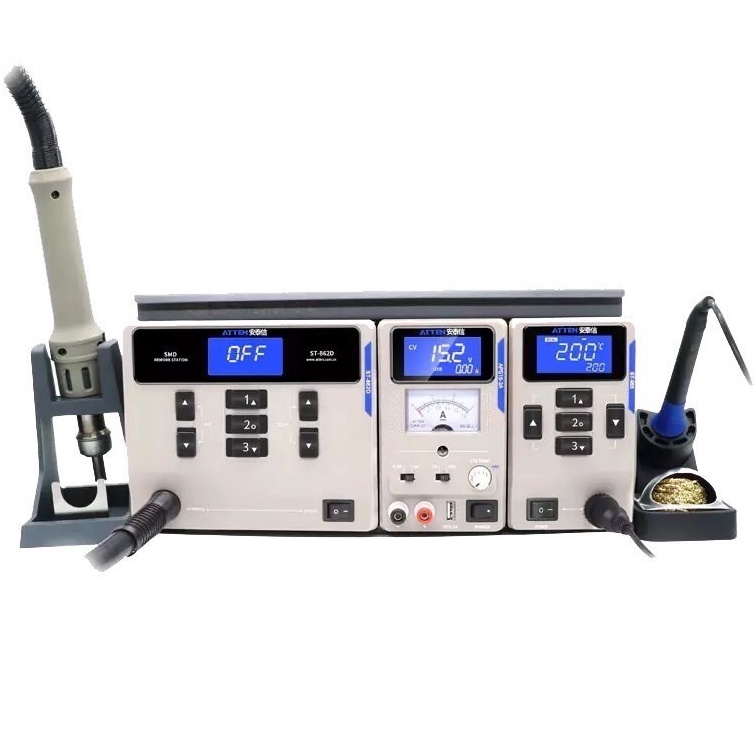 ATTEN MS300 là bộ công cụ 3in1 gồm máy khò ST-862D, máy hàn ST-965 và cấp nguồn APS15-3A
