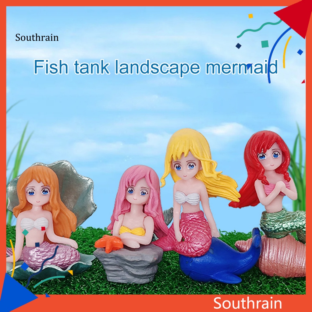 Giới thiệu Bộ 4 Đồ trang trí Nàng Tiên Cá Hoạt Hình Bằng Nhựa Resin Thủ Công DIY Trang Trí Bể Cá