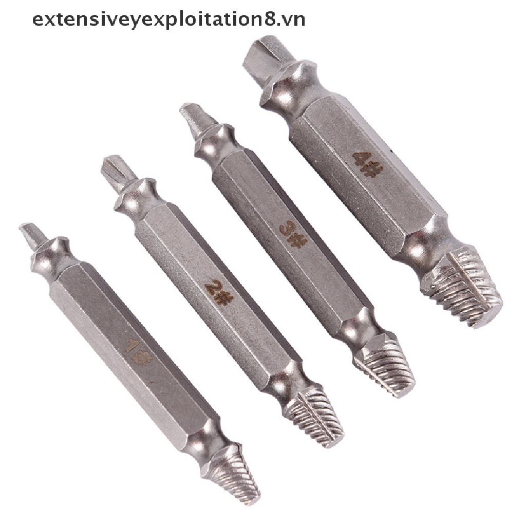 Bộ 4 dụng cụ đầu khoan tháo siết đinh và ốc bị hỏng với bộ dẫn
