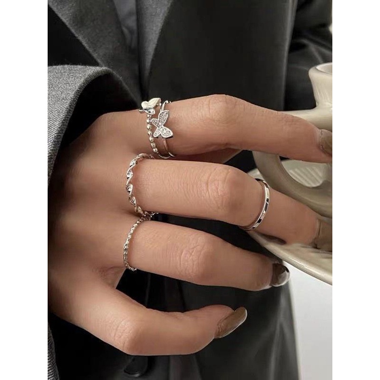 Giới thiệu Bộ 4 nhẫn hợp kim một lớp và hai lớp trang trí bươm bướm phong cách Hàn Quốc thời trang cho nữ OUYOU