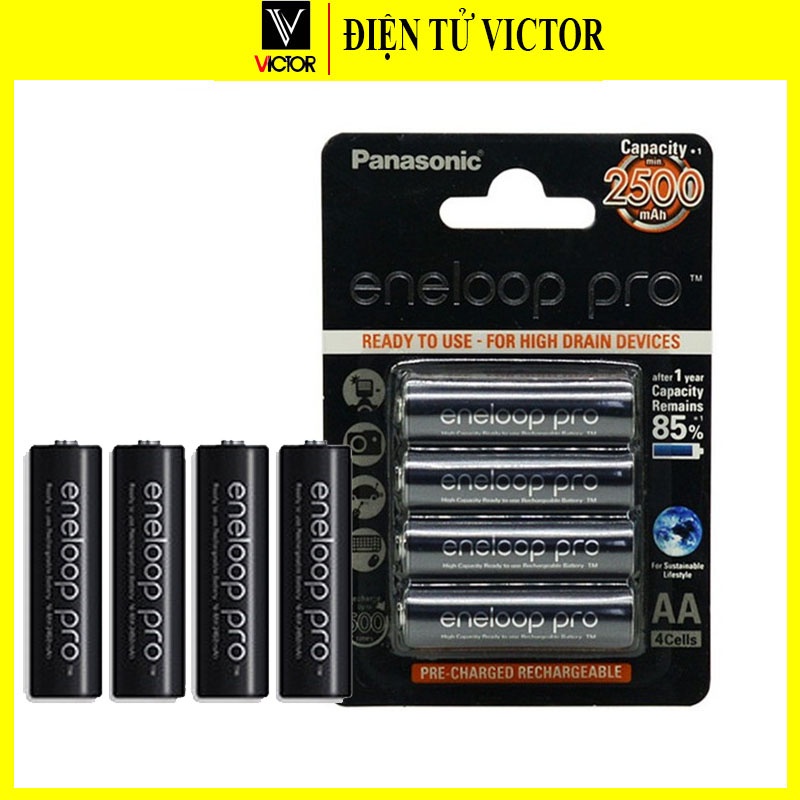 [4 pin AA - ĐEN] Combo 04 viên pin tiểu AA sạc lại Eneloop 2500mAh, có thể thay thế pin 1,5V