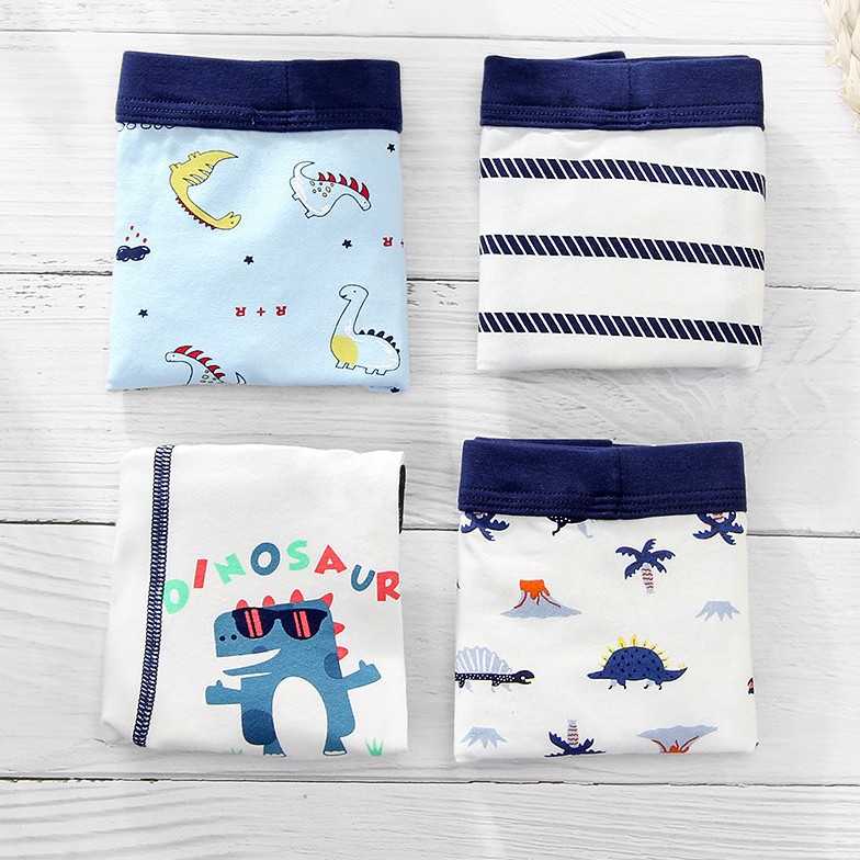 Giới thiệu Bộ 4 Quần Lót Boxer Chất Liệu 95% cotton Họa Tiết Khủng Long Hoạt Hình Cho Bé Trai 2-12 Tuổi