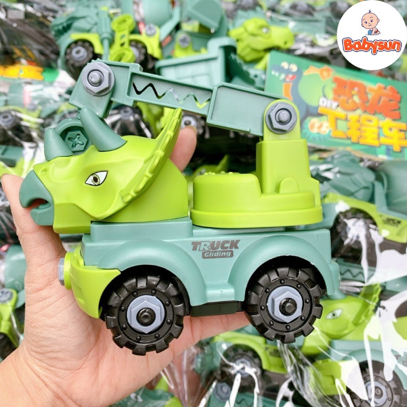 Bộ 4 Xe Khủng Long Tháo Lắp Kèm Tua Vít- Đồ Chơi Xe Mô Hình Cho Bé Yêu