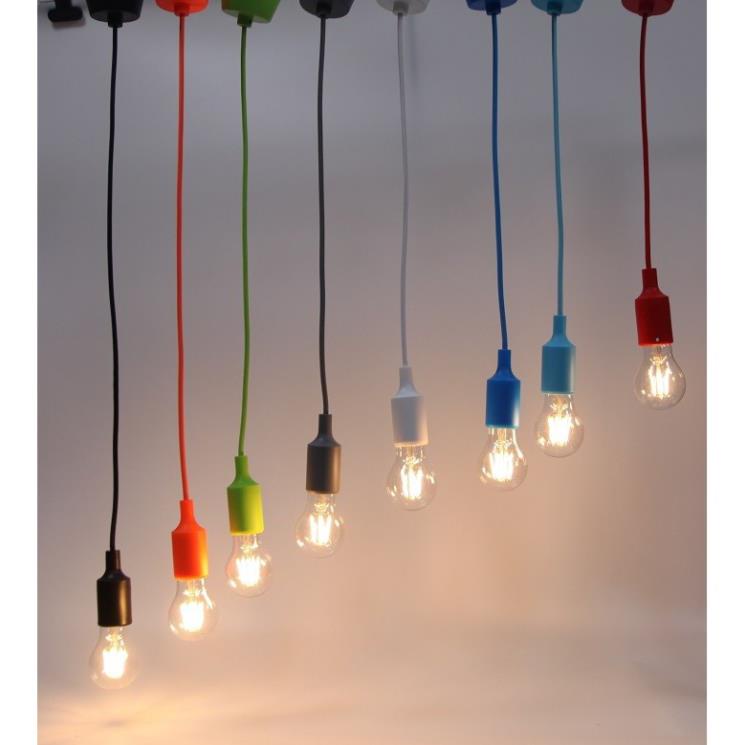 Khi bạn cần một không gian sống động nhiều màu sắc thì hãy nghĩ tới dây đèn thả trang trí bóng led Edison A60 6W. Đây là loại dây thả nhiều màu với kiểu dáng đơn giản, không cầu kỳ nhưng mang lại hiệu quả trang trí không gian nội thất cao. Dây thả mềm bọc vải bên ngoài chắc chắn, có thể thay đổi chiều cao thả đèn. Bóng là dạng bóng thủy tinh trong suốt mang hình dáng cổ điển, Đèn sử dụng bóng đèn phổ thông đuôi E27, sử dụng trang trí nhiều không gian khác nhau như quán cafe, phòng khách, phòng ngủ, bàn ăn, cầu thang, phòng bếp….