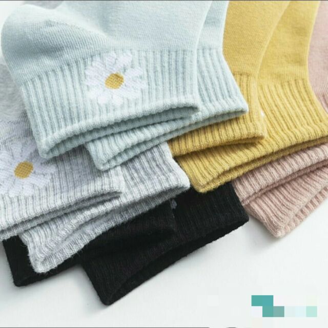 • cùng với mẫu giày hoa cúc đang làm trend trên thị trường nửa đầu 2020 thì tất bông cúc họa my cũng là một sản phẩm vô cùng hot a. • với chất liệu tới 85% cotton, 15 % còn lại là các sợi nhân tạo, tất co dãn đàn hồi 4 chiều. Thấm hút mồ hôi chân tốt. • 1 combo sẽ gồm 5 đôi đủ màu : đen, hồng nhạt, xanh nhạt, hồng đậm và xám (y hình) • Cam kết sai hàng hoàn tiền.