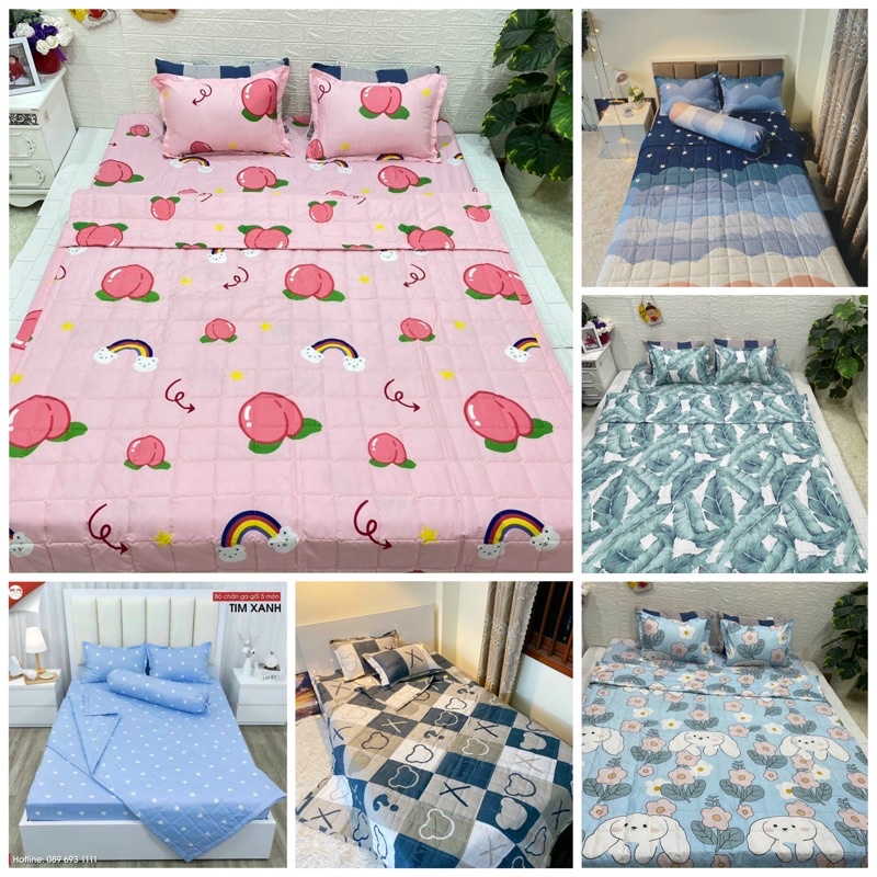 Giới thiệu Bộ 5 món chăn hè Cotton Poly gồm 1 ga ,2 vỏ gối đầu , 1 vỏ gối ,1 chăn hè Trần bông