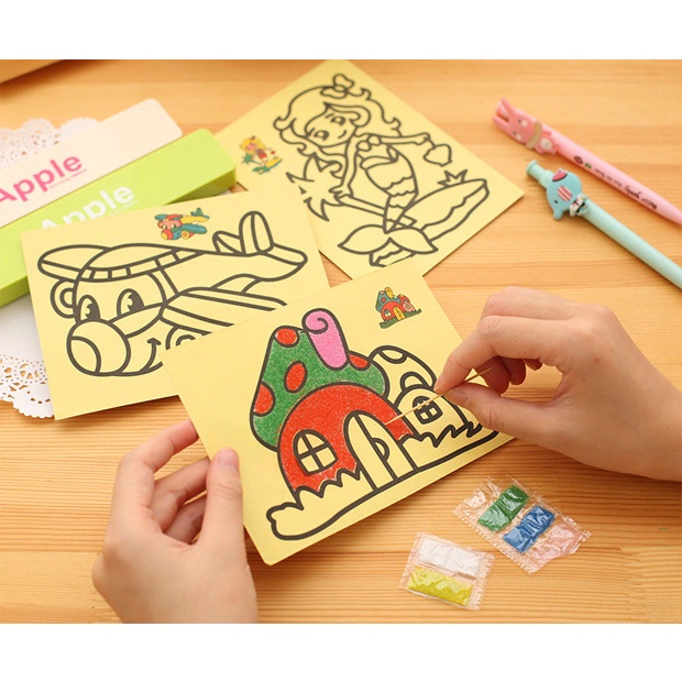 Mô tả: Hàng mới 100% Nó có thể kích thích trí tưởng tượng của trẻ Để thúc đẩy sự sáng tạo và đánh giá cao của trẻ về màu sắc Chất liệu: Pipaer, cát Mô hình: Hỗn hợp ngẫu nhiên (Chúng tôi có hơn 20 loại thiết kế, không phải tất cả hiển thị trong hình ảnh. Chúng tôi sẽ gửi thiết kế ngẫu nhiên. Xin đừng chọn, cảm ơn bạn đã hiểu) Kích thước nhỏ: 8,5 * 11,5cm Kích thước trung bình: 12 * 16,2cm