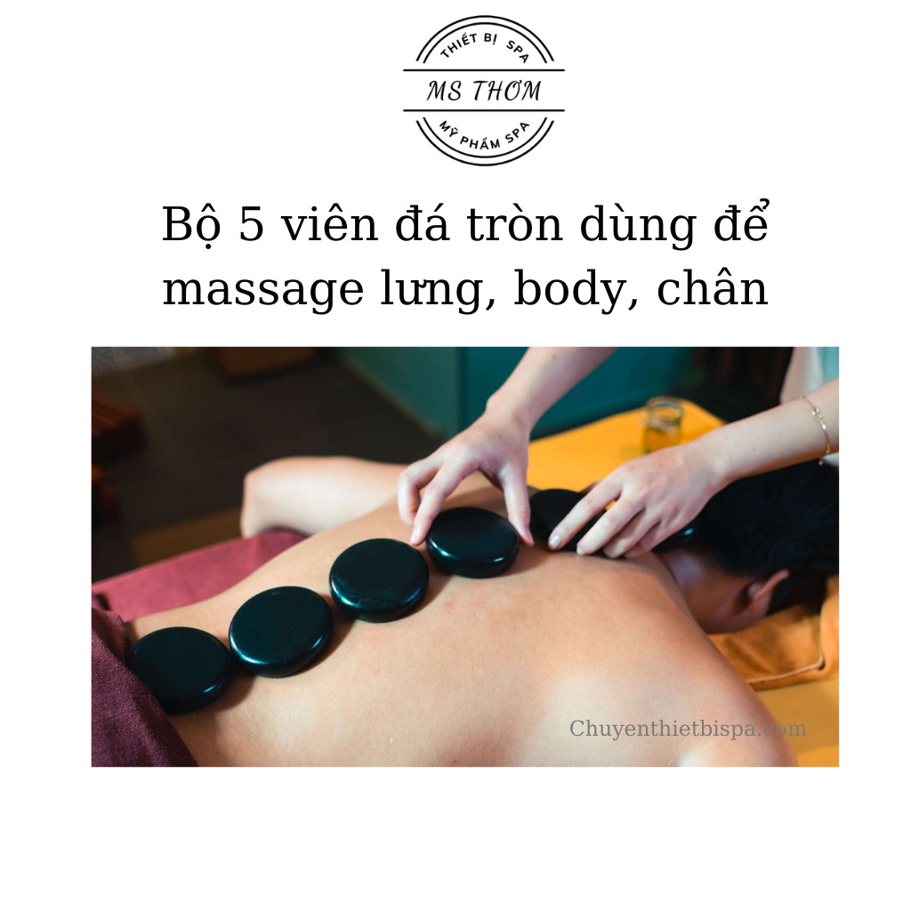 Dùng để đặt và Massage lên các vùng cơ trên lưng, bụng, ngực, còn dùng để di chuyển Massage các cơ trên cánh tay, cẳng chân. Giúp làm thư giãn các cơ tại vị trí đó, giúp máu lưu thông tốt hơn, làm mờ các vết nhăn và làm căng da trên toàn cơ thể và giúp da có sự đàn hồi tốt trở lại. Dưới những thao tác đặc thù phối hợp cùng đá Massage, liệu pháp Massage bằng đá nóng giảm căng thẳng cơ bắp, các dây thần kinh, đả thông kinh mạch làm lưu thông máu huyết và đẩy lùi sự mệt nhọc, tạo cảm giác thư thái. Đồng thời, sức nóng của đá Massage còn kích thích cơ thể bài tiết độc tố ẩn chứa bên trong ra ngoài, hỗ trợ điều trị bệnh. Đặc biệt, khi sử dụng đá Massage kết hợp cùng dầu nền hoặc dầu Massage thiên nhiên, liệu pháp Massage đá nóng còn giúp chữa một số bệnh như viêm thận, thoái hóa cột sống... Đá Massage thường được các Spa, trung tâm Massage... trang bị để thực hiện dịch vụ Massage đá nóng. Hiện nay, nhiều gia đình cũng tự trang bị bộ đá Massage để tự thực hiện ngay tại nhà.