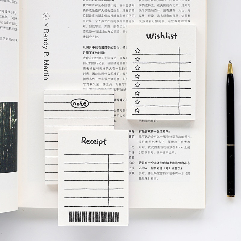 Loại sản phẩm: ghi chú dính Chất liệu: Giấy chất lượng cao 80g Phong cách: 8 mẫu Kích thước: 65mm * 89mm Số lượng: 50 tờ Trọng lượng: 25g Đóng gói: OPP