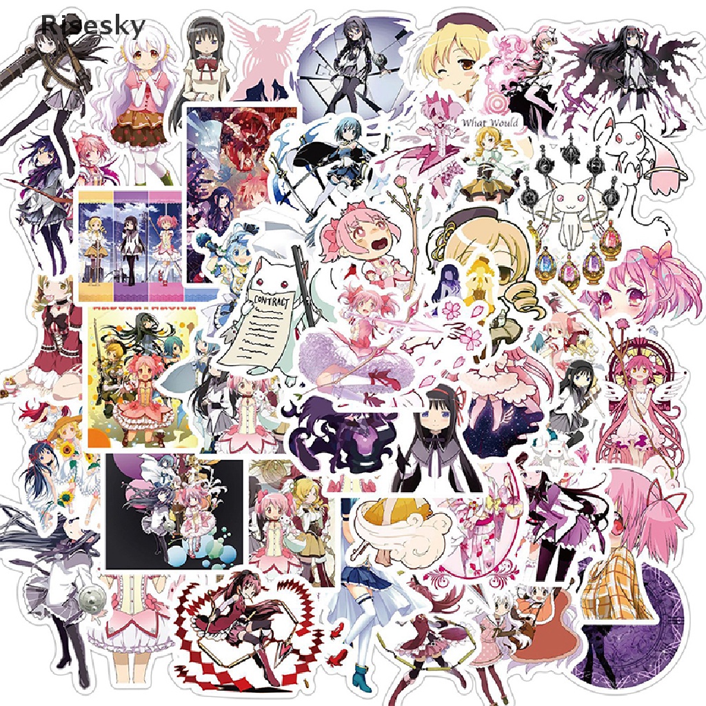 50 miếng dán hoạt hình cô gái ma thuật Madoka graffiti trang trí vali xe máy máy tnh xách tay không thấm nước DIY Chất liệu: PVC