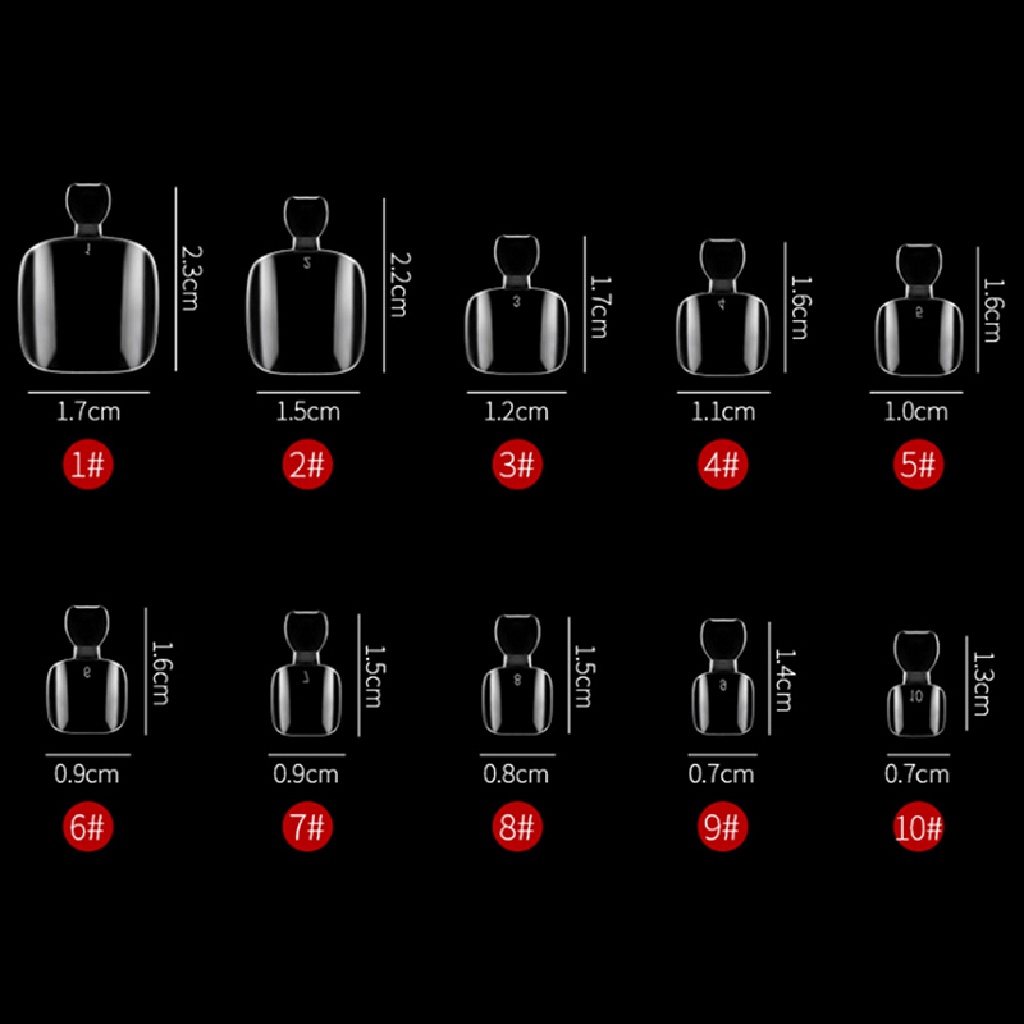 500 chiếc đầu móng chân giả với 10 kích cỡ.