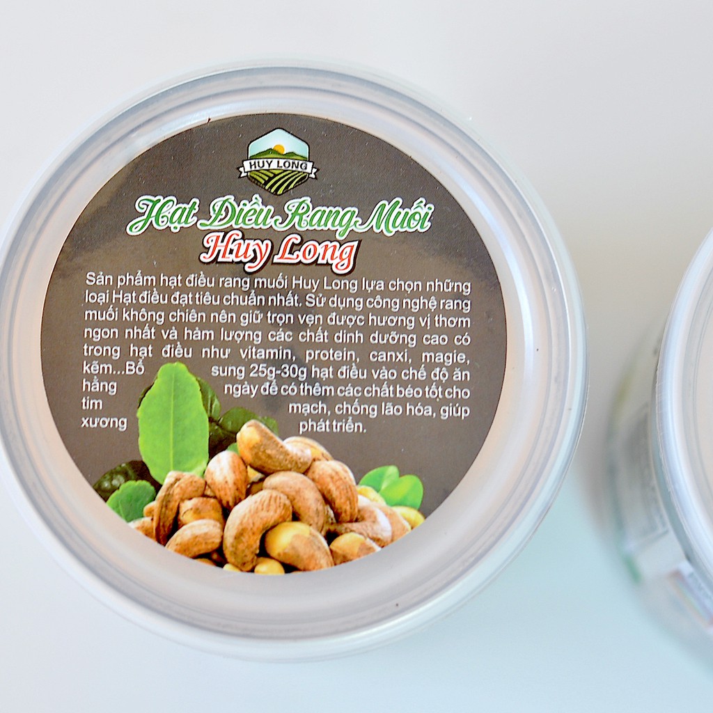 Thông tin sản phẩm: Hạt điều rang muối - vị lá chanh Thái Xuất xứ: Hạt điều có nguồn gốc từ Bình Phước, Tây Nguyên và Nam Lào... Thương hiệu: Huy Long Cashew nut Đóng gói: Hộp 500g Hạn sử dụng: Xem trên bao bì sản phẩm. Sản phẩm có nguồn gốc bằng cách check mã QR. Hướng dẫn sử dụng: Sản phẩm được dùng liên sau khi mở hộp, nếu không dùng hết nên đậy kín lại bằng nắp nhựa kín khí Bảo quản nơi khô ráo tháng mát.