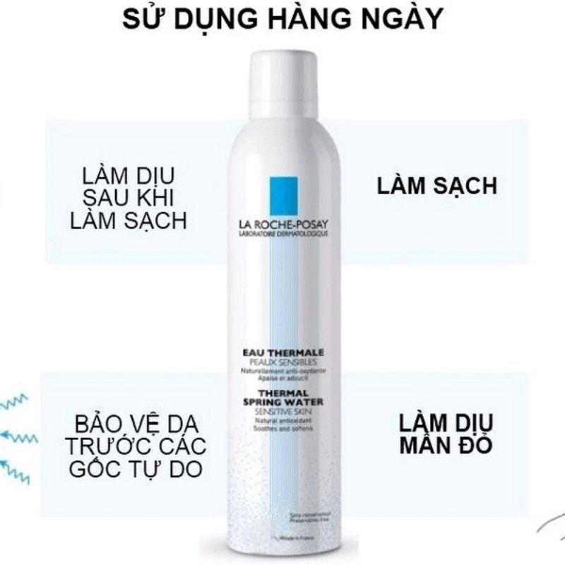 - Xịt khoáng phù hợp ngay cả với làn da nhạy cảm nhất: trẻ sơ sinh, trẻ em, người lớn, phụ nữ có thai - Giàu Selenium và các nguyên tố gốc Oligo, nước suối khoáng La Roche-Posay đã được chứng minh lâm sàng về đặc tính làm dịu và bảo vệ da. - Nguồn nước này còn chưa Prebiotic - chứa những thành phần dinh dượng tự nhiên giúp nuôi dưỡng, cân bằng hệ vi sinh vật trên da, giúp củng cố hàng rào bảo vệ da. - Làm giảm độ đỏ của da đặc biệt khi thời tiết khắc nghiệt trong mùa hè quá nóng bức hay khi ở mùa đông nhiệt độ thấp và hanh khô, da bị dị ứng, hay ửng đỏ hoặc khi di chuyển da phải chống lại ảnh hưởng của môi trường nắng gió dễ xuất hiện những triệu chứng kích ứng da. - Nguồn nước khoáng La Roche-Posay giàu nguyên tố vi lượng được khoa học chúng mình có tác dụng làm dịu da, giảm kích ứng, mẩm đỏ và chống oxi hóa.