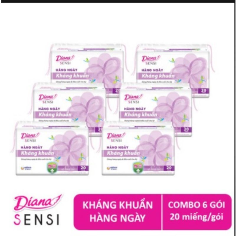 Giới thiệu Bộ 6 Gói Băng Vệ Sinh Hàng Ngày Diana Sensi Kháng Khuẩn, Gói 20 Miếng