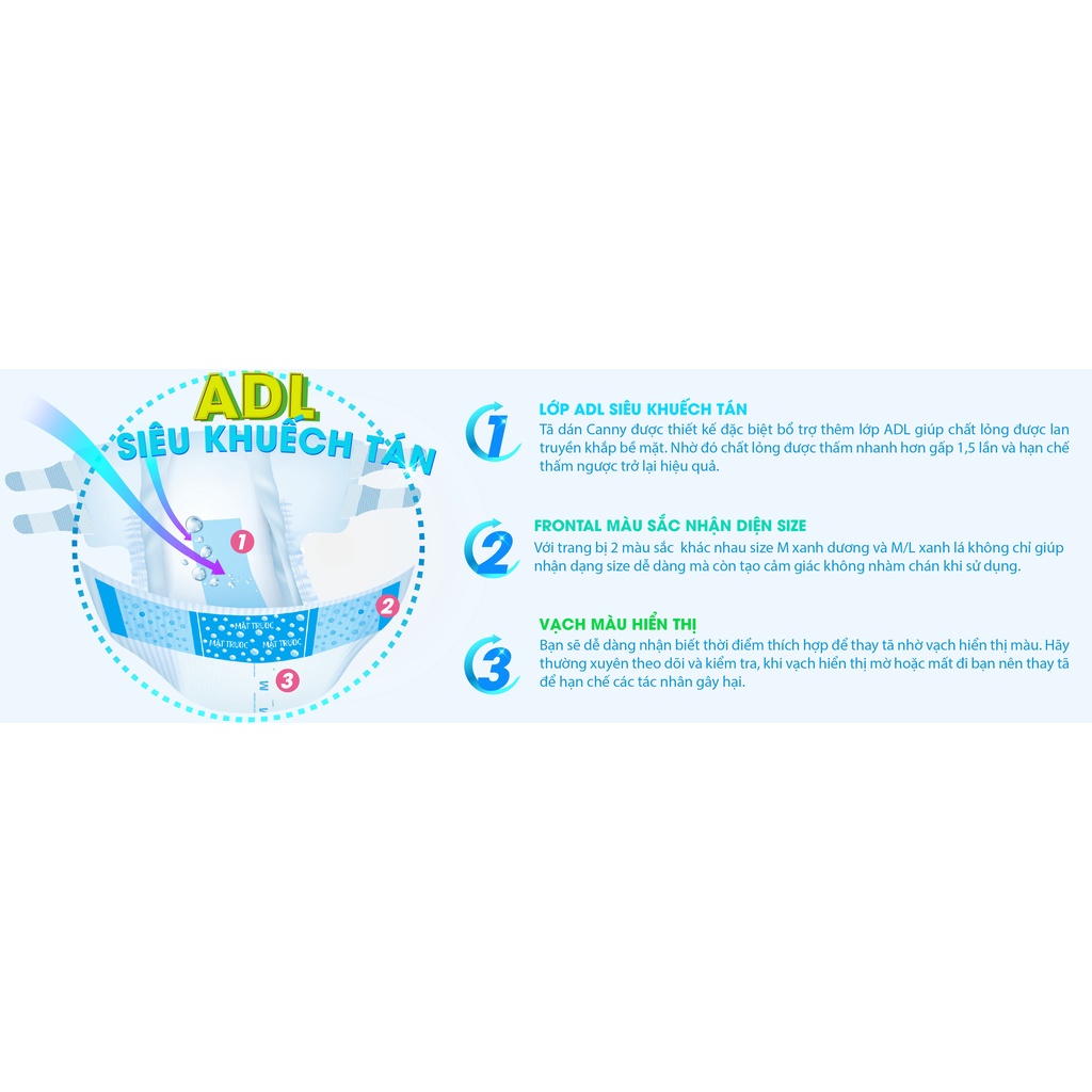 I. MÔ TẢ SẢN PHẨM Tã dán người lớn Canny được sản xuất trên dây chuyền công nghệ tiên tiến, mỗi sản phẩm đều được kiểm tra và bảo quản theo quy trình nghiêm ngặt. Để phù hợp với người tiêu dùng Canny cho ra 2 kích thước phù hợp với từng đối tượng sử dụng. Cùng với màu sắc khác nhau ở từng size sẽ tạo sự bắt mắt và mới lạ cho người dùng.