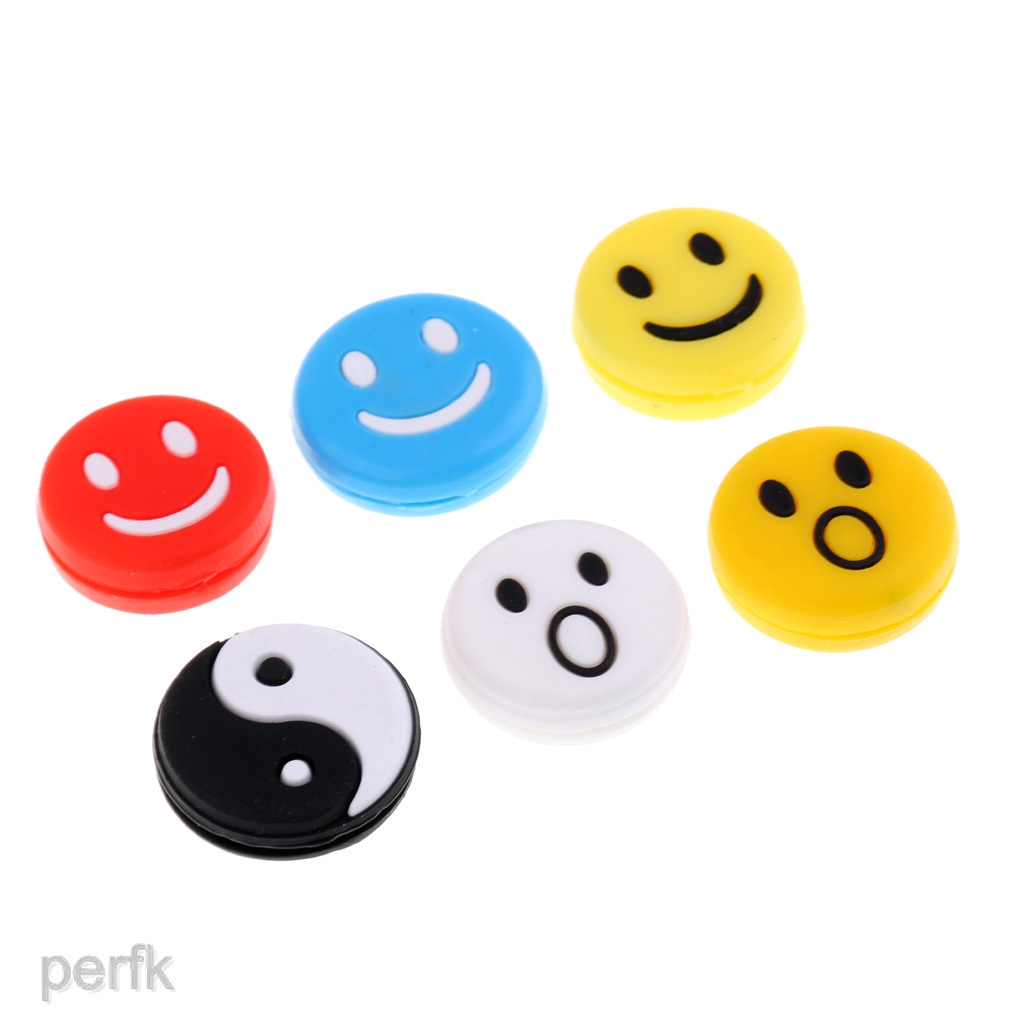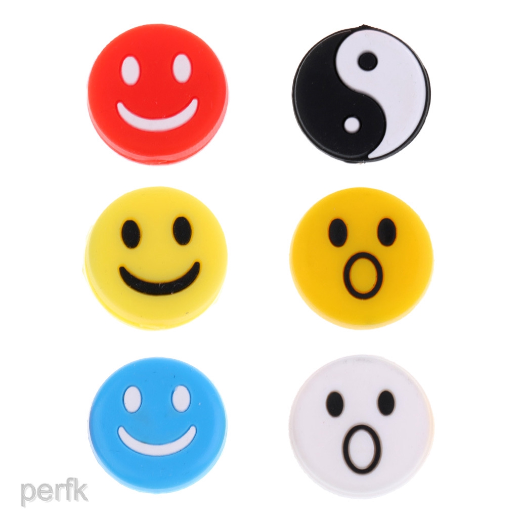 Bộ 6 màu hỗn hợp, làm bằng silicon bảo vệ môi trường, an toàn và không gây hại. Thực tế và bền bỉ. Thiết kế rất dễ thương, trông rất đáng yêu, thêm phần thú vị cho cây vợt của bạn. Diện tích tối đa có thể làm giảm hiệu quả chấn động gây ra khi đánh bóng, giữ vợt ổn định. Giúp định tính và cầm nắm ổn định hơn; mang đến cho người chơi cảm giác thoải mái, phụ kiện giảm xóc này phù hợp với mọi mặt vợt.