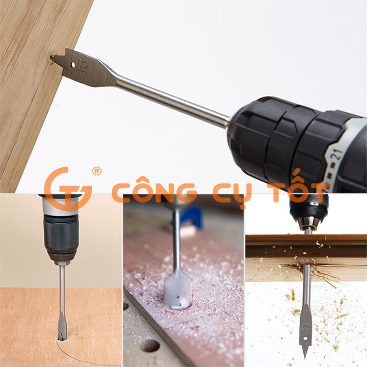 1. Đặc tính nổi bật -Thiết kế đơn giản, dễ mài, dễ sử dụng -Mũi khoan có đầu định tâm giúp khoan chính xác, thoát phôi nhanh -Được chế tạo từ thép cacbon xử lý nhiệt, phủ titan, chống gỉ sét -Phù hợp khoan trên bề mặt vật liệu gỗ với các đường kính mũi khoan: 10, 12, 16, 18, 25mm 2. Mô tả chi tiết Mũi khoan đuôi cá là sản phẩm quen thuộc của những người thợ mộc bởi thiết kế đơn giản, dễ sử dụng, giá thành phải chăng và vô cùng tiện lợi giúp công việc trở nên dễ dàng hơn. Bộ 6 mũi khoan đuôi cá phủ titan có các cỡ mũi thông dụng : 10, 12, 16, 18, 20, 25mm rất phù hợp với thợ chuyên khoét bản lề cửa, khoét ổ khóa tủ, ... lắp đặt vật tự cho ngành mộc nhanh, chính xác và tiện lợi. 3. Thông số kỹ thuật -Thiết kế đơn giản, dễ mài, dễ sử dụng và tháo phôi nhanh -Được làm từ thép cacbon. phủ Titanium có độ cứng cao sau xử lý nhiệt -Đầu khoét nhọn giúp định tâm một cách chính xác Bộ 6 mũi khoan đuôi cá gồm: -Mũi khoan đường kính 10mm có chiều dài cơ sở 150mm -Mũi khoan đường kính 12mm có chiều dài cơ sở 149mm -Mũi khoan đường kính 16mm có chiều dài cơ sở 148mm -Mũi khoan đường kính 18mm có chiều dài cơ sở 149mm -Mũi khoan đường kính 20mm có chiều dài cơ sở 150mm -Mũi khoan đường kính 25mm có chiều dài cơ sở 152mm