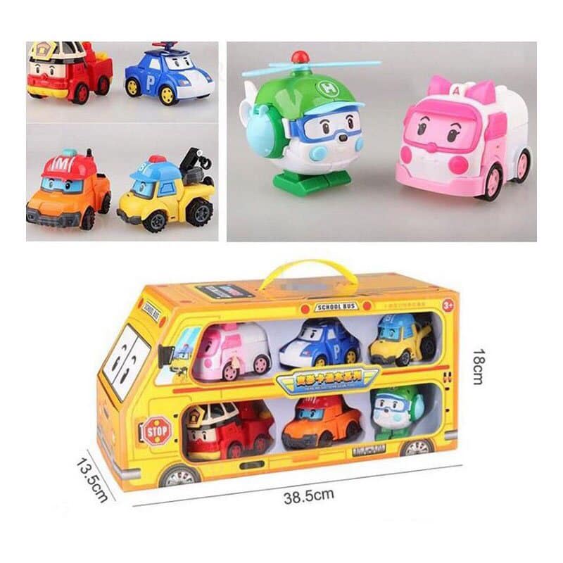 Giới thiệu Bộ 6 Xe Robocar Poli Biến Hình - Đồ Chơi Robot Biến Hình Set 6 Con Hộp Xe Bus
