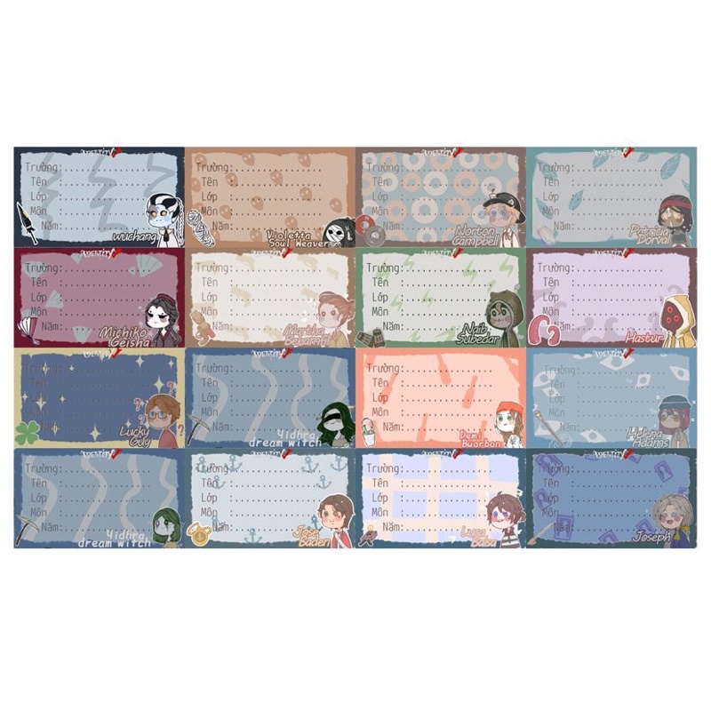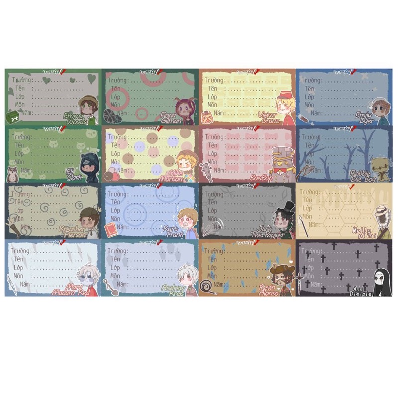 Giới thiệu bộ 60 nhãn vở ldentity v khác nhau